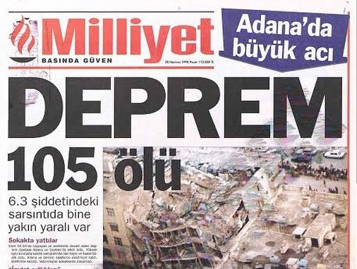 27 Haziran 1998 tarihinde yerel saatle 16.55’te yaklaşık 6.3 büyüklüğünde Adana-Ceyhan’da deprem meydana geldi.