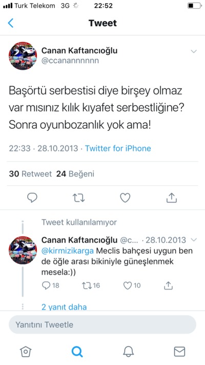 Söz konusu görüntüler ve Kaftancıoğlu'nun 28 Şubat açıklaması, akıllara Twitter paylaşımlarını getirdi. Kaftancıoğlu bir mesajın başörtülü rektörlerle dalga geçerek üniversitelerdeki tesettür özgürlüğünü eleştirmişti. Bir diğer paylaşımında ise kılık kıyafet serbestisi hakkında konuşurken başörtüsü ile bikiniyi kıyaslayarak aklınca dalga geçmişti.