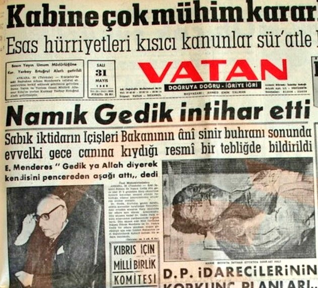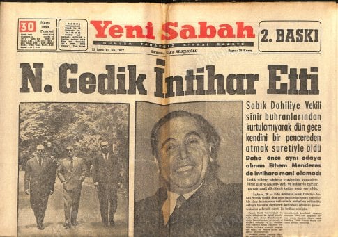 29 Mayıs 1960: Namık Gedik’in vefatı (Eski İçişleri Bakanı)