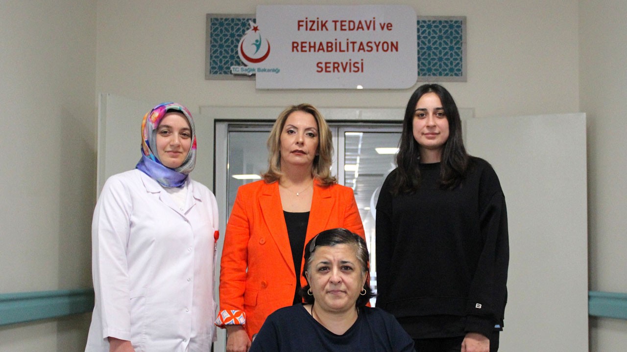 Yaşamış olduğu zorlu süreçleri dile getiren Nalan Erkoç, "2011 yılında kanser teşhisi aldım. Uzun süreli ciddi bir tedavi gördüm. Daha sonrasında 8 yıl sonra yürüme kabiliyetimi kaybetmeye başladım. Uzun süre doktorlara gittim. Çok çeşitli tedaviler gördüm. Ancak hiçbirinde ayağa kalkabileceğim, yeniden yürüyebileceğim söylenmedi. Zaten Onkoloji'den çıktığımda da ‘2,5-3 aylık ömrün kaldı denilmişti. O yüzden çokta üzerine düşmedik uzun süre. Sonra hayatta kalınca yürüyebilmek için çabalamaya başladım. Çeşitli fizik tedavi hastanelerinde fizik tedavi gördüm. Ancak hiçbirinden sonuç alamadık. Süreler kısa olduğu için ayağa kalktım. Tam yürüme aşamasında eve dönmek zorunda kaldım. İlk defa Erol Olçok Hastanesi'nde Ayla Hocam ve ekibi bir tarafından çok ciddi bir tedaviye başladık. Devam ediyoruz. Ayağa kalktım, adımlamaya başladım. Bir cihaz yapıldı, o cihazla yürümeye çalışıyorum. Ümidimi tamamen kaybetmiştim. Yatalak hayata hazır ol, artık yürüyemezsin, sinirlerin bitmiş, ayağa kalkman mümkün değil denilmişti. Bu nedenle ümidimi çok kaybetmiştim ama buraya geldim. Ayla hocam ve ekibi tarafından tedavi sürecine alınınca yeniden ümitlendim. Ben de çok gayret ediyorum onlarda yardımcı oluyorlar" dedi.
