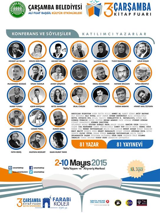 3. Çarşamba Kitap Fuarı, 2 Mayıs ile 10 Mayıs tarihleri arasında Samsun'da, “Çarşamba Vefa Yaşam ve Alışveriş Merkezi”nde gerçekleşiyor.