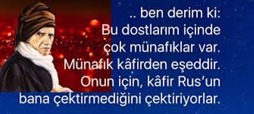 “Münafık, iki sürü arasında gidip gelen şaşkın koyun gibidir. Bir o sürüye gider, bir bu sürüye!”