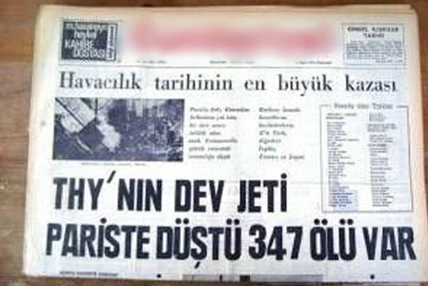 03 Mart 1974: Türk Hava Yolları'nın DC-10 tipi Ankara yolcu uçağı, arka bagaj kapısının kopması sonucu Paris'te Orly Havaalanı yakınlarında ormana düştü.