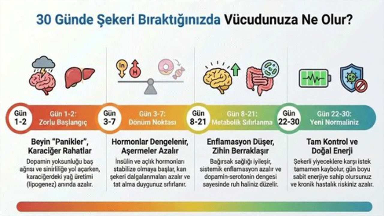 Modern tıbbın "beyaz ölüm" olarak nitelendirdiği şekeri hayatınızdan sadece bir ay boyunca çıkardığınızda, bedeniniz adeta küllerinden yeniden doğuyor. Dr. Sten Ekberg gibi dünyaca ünlü uzmanların "metabolik devrim" olarak adlandırdığı bu 30 günlük süreçte, ilk üç gün yaşanan dopamin krizi ve "şeker gribi" belirtileri dördüncü günden itibaren yerini muazzam bir enerji patlamasına bırakıyor.