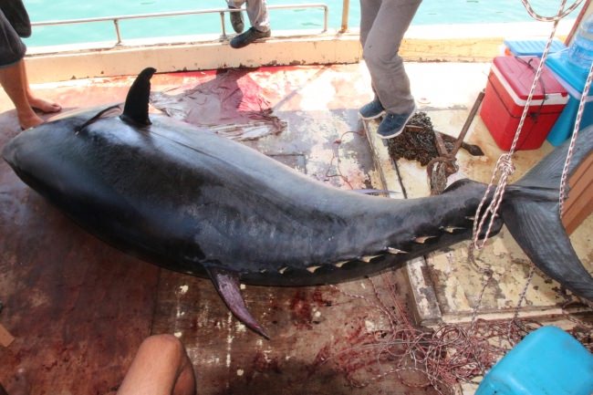 Balıkçı Geyik, gazetecilere yaptığı açıklamada, oltalarına böylesi orkinosun takılmasının kendilerini şaşırttığını söyledi.
