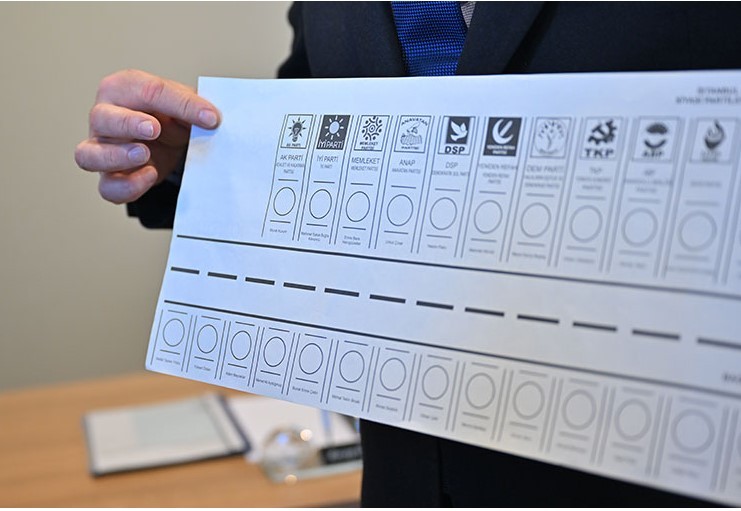 Seçime toplamda 34 siyasi parti katılacak. Partilerin oy pusulasındaki sıralaması; AK Parti 1, İYİ Parti 2, Sol Parti 3, Büyük Birlik Partisi 4, Memleket Partisi 5, Anavatan Partisi 6, Demokratik Sol Parti 7, Yeniden Refah Partisi 8, Halkların Eşitlik ve Demokrasi Partisi (DEM Parti) 9, Türkiye Komünist Partisi 10, Anadolu Birliği Partisi 11, Zafer Partisi 12, Halkın Kurtuluş Partisi 13, Türkiye Komünist Hareketi 14, Bağımsız Türkiye Partisi 15, Gelecek Partisi 16, Yeni Türkiye Partisi 17, CHP 18, Emek Partisi 19, HÜDA PAR 20, Hak ve Özgürlükler Partisi 21, Ocak Partisi 22, Adalet Birlik Partisi 23, Demokrat Parti 24, Güç Birliği Partisi 25, Millet Partisi 26, Milli Yol Partisi 27, Adalet Partisi 28, Aydınlık Demokrasi Partisi 29, MHP 30, Türkiye İşçi Partisi 31, Demokrasi ve Atılım Partisi 32, Saadet Partisi 33, Vatan Partisi 34, şeklinde olacak.