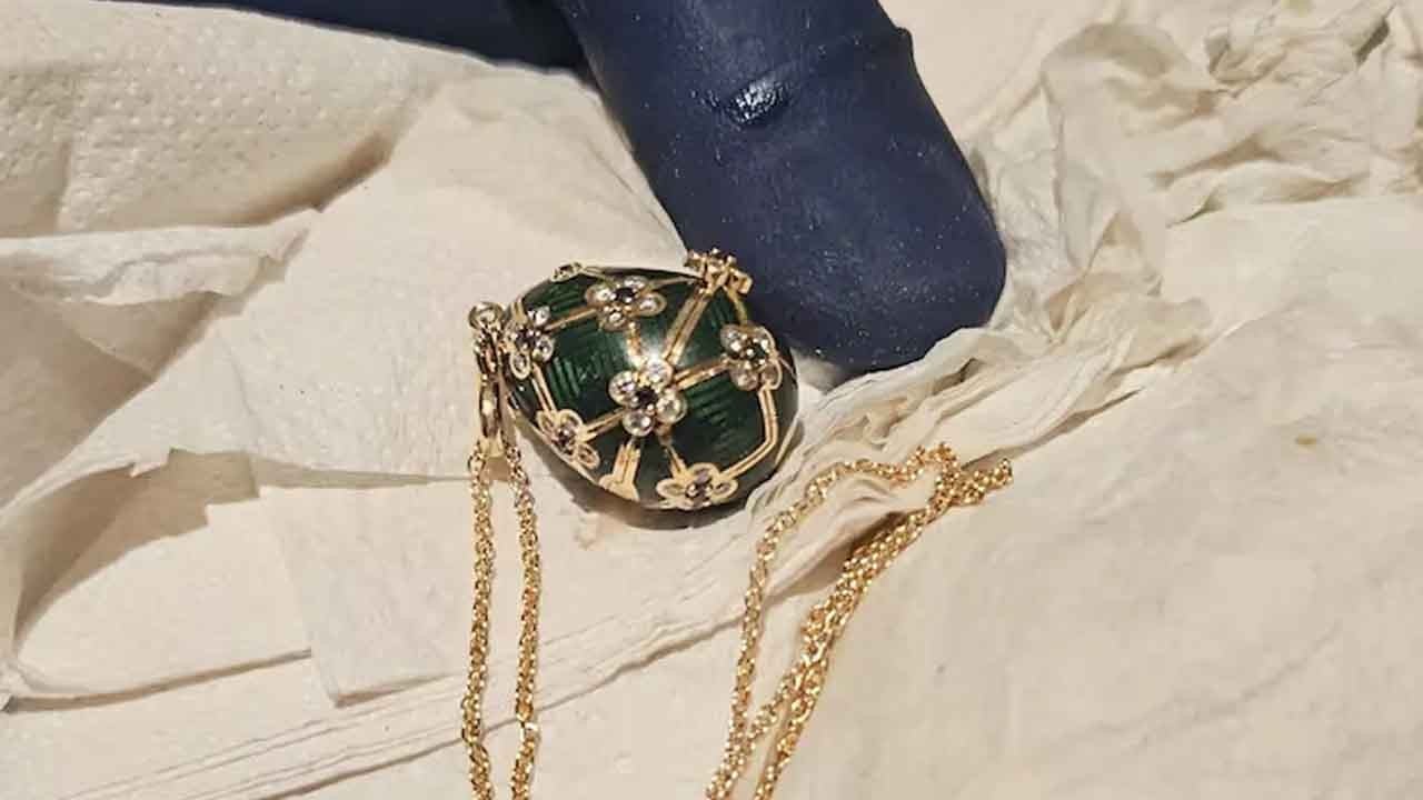 Polis yetkilileri, 18 ayar altından üretilen, 60 beyaz elmas ile 15 mavi safir ile süslü, yutulan kolyenin herhangi bir tıbbi müdahale gerekmeden doğal yollarla çıkarıldığını belirtti.