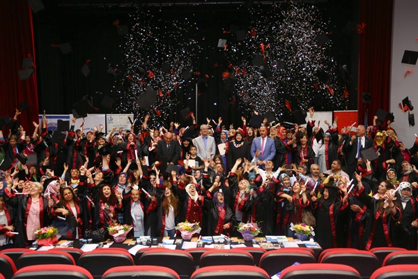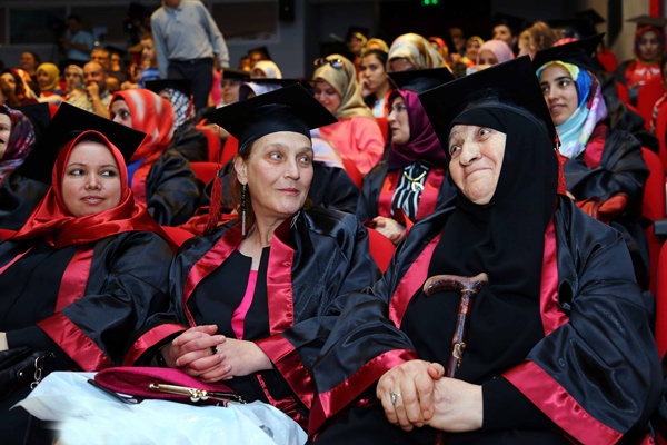 Konuşmaların ardından kadın kursiyerlere sertifikaları, Çağırıcı ve Rektör Yüksek tarafından verildi. Sevinçlerini kendilerini yalnız bırakmayan yakınlarıyla paylaşan 336 kadın, hep birlikte havaya kep atarak mezuniyetlerini kutladılar.