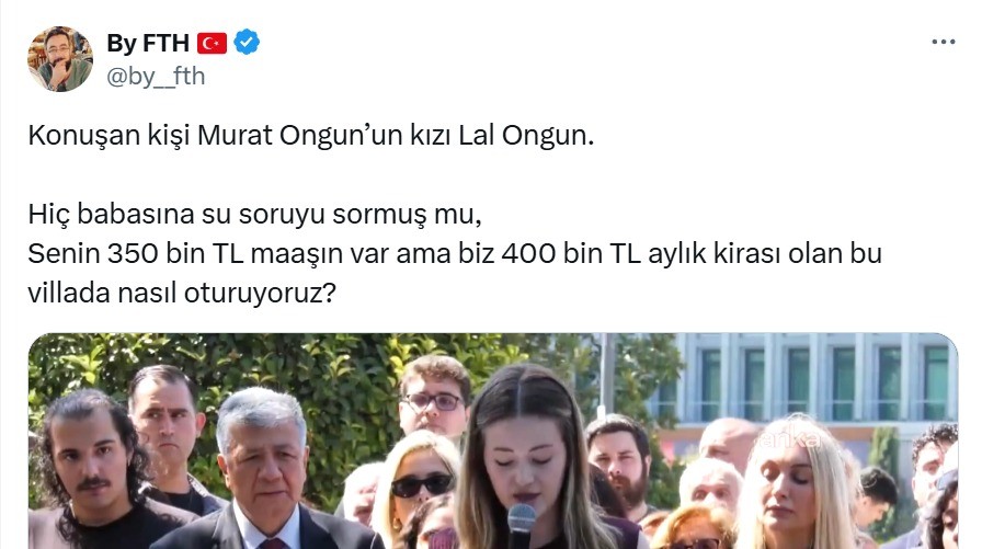 Yolsuzluk soruşturması zanlısı Murat Ongun’un kızı Lal Ongun, Saraçhane’de kameralar karşısına geçip açıklama yaparken, kullandığı ifadelere sosyal medyadan tepki yağdı.