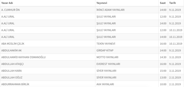 TÜYAP Kitap fuarı imza günleri listesi 2019