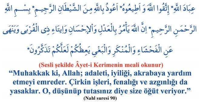 Hutbemin sonunda Rabbimizin İsrâ suresinde yer alan öğütlerinden bazılarını sizlerle paylaşmak istiyorum: Yalnızca Allah’a kulluk et. Anne-babana iyi davran, yaşlanıp sana muhtaç hâle geldiklerinde onlara kol kanat ger, “öf!” bile deme. Akrabaya, yoksula ve darda kalana yardım et. Cimrilikten ve israftan kaçın. Zinaya yaklaşma. Haksız yere cana kıyma, asla kan davası gütme. Yetimin malına el uzatma. Ahde vefa göster. Ölçü ve tartıda hile yapma. Hakkında kesin bilgi sahibi olmadığın şeyin peşine düşme. Yeryüzünde böbürlenerek yürüme.