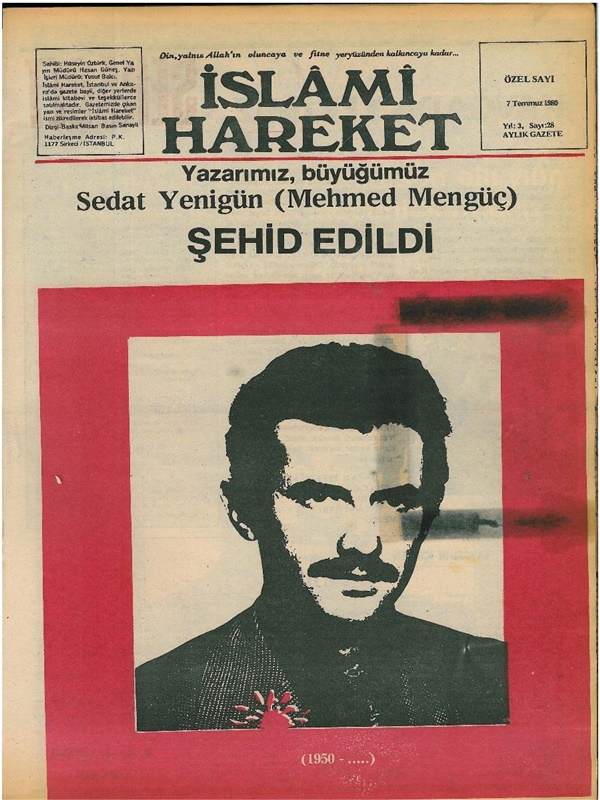 Adı itibariyle İslam’ı pratiğe dökecek bir hedef doğrultusunda yayınlanmaya başlanan İslami Hareket dergisi, talebeler ve iş güç sahibi kişilerin desteğiyle yayın faaliyetlerine başlamıştır. İlk sayısı Şubat 1978’de yayınlanan dergi, aylık olarak yayın hayatına devam etmiştir. Otuzuncu ve son sayısı Eylül 1980’de yayınlanmıştır. 5 Temmuz 1980’de Sedat Yenigün, Fatih Akşemseddin Caddesinde bir berber dükkanında gerçekleştirilen faili meçhul bir suikast sonucu hayatını kaybetmiştir.