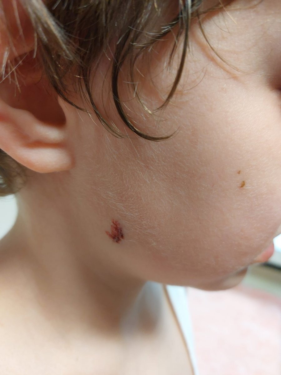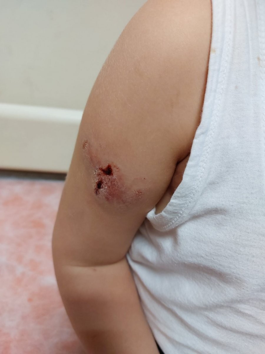 Vücudunda çeşitli yaralar oluşan küçük çocuk, saldırının şokunu yaşadı.