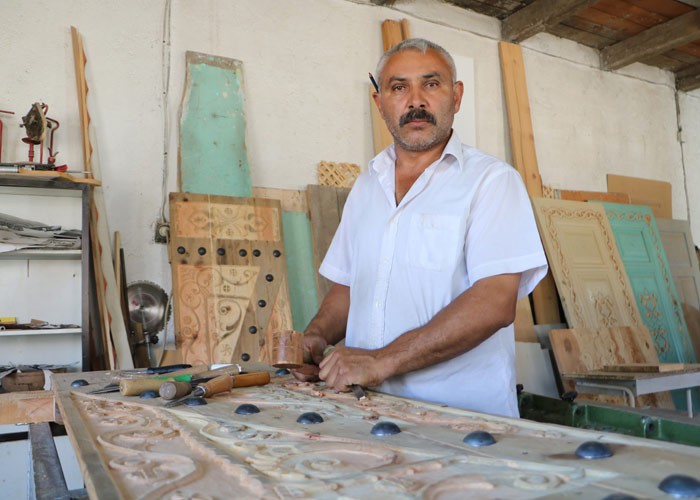 Sivas’ta ahşap oymacısı Mehmet Dülger, sahipsiz metruk evlerden 50 ile 100 lira arasında satın alarak topladığı eski kapıları oyma sanatı ile kullanılır hale getirip, bin ile 5 bin lira arasında satıyor.