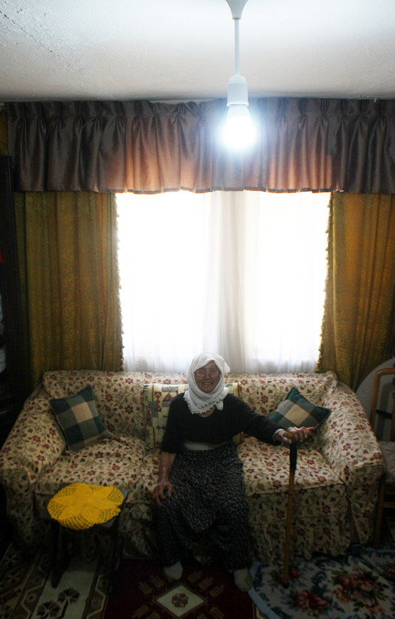 75. Yıl Mahallesi'nde 50 yıldır oğlu Durmuş Usu ile yaşayan Hesna nine, elektrik hattı çekilmeyen evinde gaz yağı, haşhaş yağı ve küçük tüple aydınlatmayı sağlıyordu.
