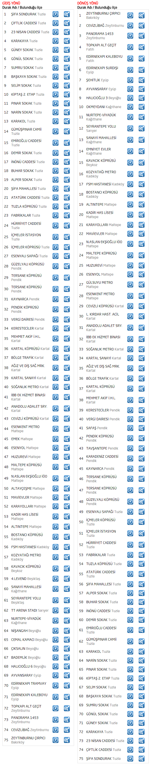 ''500T Şifa Mahallesi- Cevizlibağ hattının güzergâhı Şifa Mahallesi- Tuzla Köprüsü- Kaynarca- Pendik Köprüsü-Kartal Metro- Kozyatağı-Kavacık Köprüsü-4.Levent-Nurtepe Viyadüğü-Edirnekapı- Cevizlibağ- Zeytinburnu Çırpıcı olarak değişmiştir.''