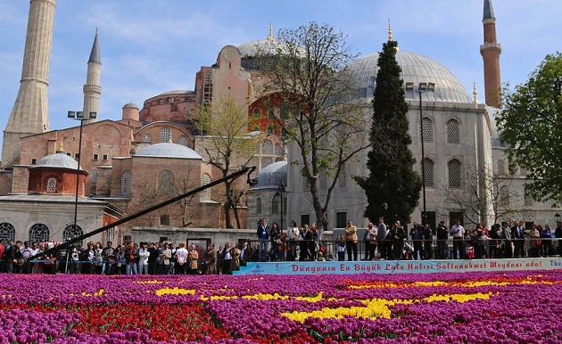İstanbul Büyükşehir Belediyesi, 10. İstanbul lale Festivali kapsamında, Sultanahmet Meydanı'nda, bin 262 metrekarelik alanda 545 bin laleden "dünyanın en büyük halı motifini" oluşturdu.