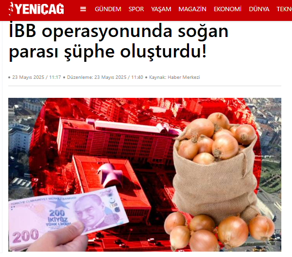 "İBB operasyonunda soğan parası şüphe oluşturdu!" başlıklı haberde safsatalarına yer verilen Avukat Yiğit Gökçehan Koçoğlu, sorgudaki detayı 'İBB dosyası öyle bir hal aldı ki' diyerek gözaltına alınan bir ismin hesabına 10 ayrı parçada geçen 5 çuval soğan parası şüpheye neden olduğunu söyledi.