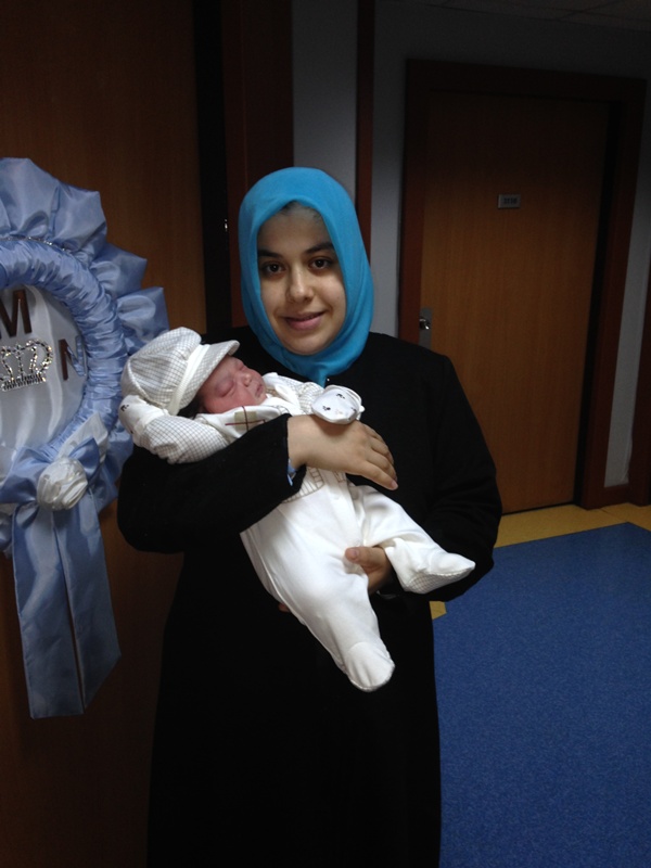 Saliha Coşkun henüz 26 yaşında ve 2 çocuk annesi. İlk bebeğini normal doğumla dünyaya getirdi. İkinci bebeğe hamile kaldığında doktoru da uygun görürse normal doğumla bebeğini dünyaya getirmek istiyordu. Doktorlar kilolu olacağını ultrasonda fark etti ve ön hazırlıklarını yaptı. Doğum, beklenilen tarihte kapıyı çaldı. Coşkun, ağır sancılarla getirildi hastaneye, doğum başlamıştı. Baba Cavit Coşkun, bebeğin iri olması sebebiyle tedirgindi. Saliha Coşkun, herşeye rağmen normal doğumdan biran bile vazgeçmemişti.Abdullah bebek yaklaşık 1 saat süren doğum sonrasında 16:30’da annesine kavuştu. İşte o an,anne Saliha Coşkun, duygularını şöyle ifade etti: Şuan çok mutluyum, normal doğum yaptığım için. Sağ salim normal doğum yapmayı başardık. İlk doğumumda normaldi. 3 kg 200 gr doğmuştu. İkinci çocuğumuz 4 kg 550 gr olunca çok şaşırdık. Doktorum, bebeğin kilolu olacağını, yeni doğanlardan daha farklı olabileceğini söylemişti. Bebeğin diğer bebeklere göre iri olduğunu duyunca ilk etapta korktum. Fakat normal doğum yapmam için hiçbir engel olmadığını söyledi.Önce Allaha, sonra doktoruma teslim oldum. Şuan çok mutluyum, duygularımı tarif edemem. Benim gibi bebek sahibi olmak isteyen her kadının bu duyguları yaşamasını isterim.” şeklinde konuştu.