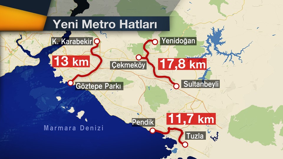 Çekmeköy–Sancaktepe-Sultanbeyli Metrosu ile Sarıgazi (Hastane) - Taşdelen - Yenidoğan Metrosu inşaat ve elektromekanik sistemler temin, montaj ve işletmeye alma işleri yapım işi de ağustosta ihaleye çıkıyor. 17.8 kilometrelik hatta 14 istasyon bulunacak, Üsküdar’dan Sultanbeyli’ye kesintisiz ulaşım sağlanacak.