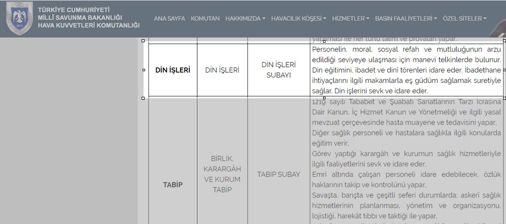 Kuvvet komutanlıklarının tamamında yer alacak Din Subaylığı’nın tarifi, TSK’nın “Subay İhtisasları” bilgilendirme bölümünde şöyle yapıldı: “Personelin, moral, sosyal refah ve mutluluğunun arzu edildiği seviyeye ulaşması için manevi telkinlerde bulunur. Din eğitimini, ibadet ve dinî törenleri idare eder. İbadethane ihtiyaçlarını ilgili makamlarla eş güdüm sağlamak suretiyle sağlar. Din işlerini sevk ve idare eder.”
