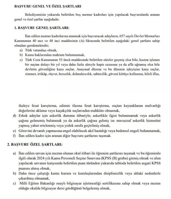 Kırşehir ili Mucur Belediye Başkanlığı tarafından duyurulan memur alımı ilanında, adaylardan KPSS puanının yanı sıra farklı şartları taşımaları da isteniyor.