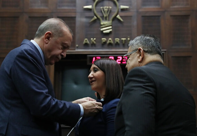 AK Parti Grup Toplantısı'nda 7 belediye başkanı AK Parti'ye geçti. Cumhurbaşkanı Erdoğan, rozetlerini taktı.