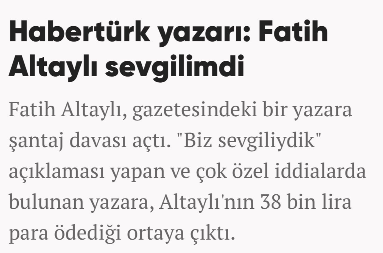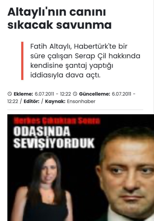 Yav bu kadar da olmaz demeyin dahası var. Fatih Altaylı ilişki yaşadığı ve Fetönün gayrimeşru kızı olduğu bilinen Serap Çil ile mahkemelik olunca bir sürü pislik ortaya saçıldı.