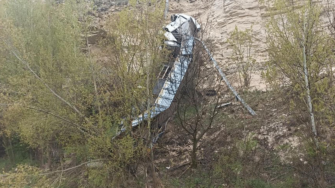 Sivas'ın Gürün ilçesinde Malatya’dan Kayseri’ye giden tır, Suçatı mevkisinde 70 yükseklikten uçuruma yuvarlandı. Tırın sürücüsünün kazayı hafif sıyrıklarla atlatması görenleri hayrete düşürdü.