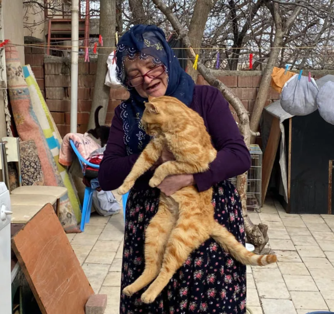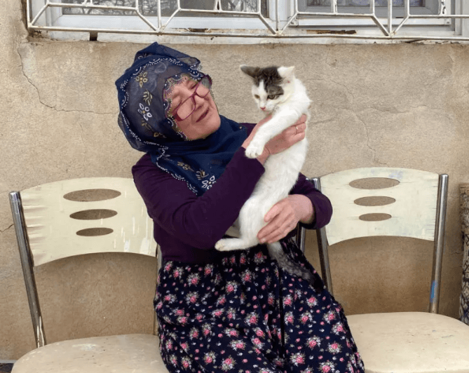 Elazığ'da yaşayan 63 yaşındaki Nuriye Teyze ailesiyle birlikte sokakta yaşayan 70 sokak kedisini kışın evin içinde yazın evinin bahçesinde çocuğu gibi bakıyor