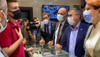 - Ekim 2021’de Akşener, İYİ Parti grup toplantısına ‘kebapçı’ diye kürsüye CHP Gölbaşı Belediye Meclis üyesi adayı İbrahim Çetinkaya’yı çıkardı. Kürsüde konuşan Çetinkaya’nın sözleri üzerinden MHP Genel Başkanı Devlet Bahçeli hedef alındı.
