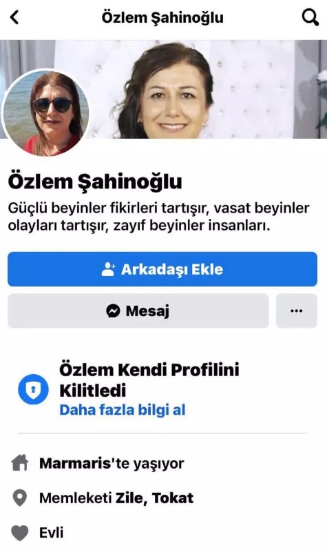 Sosyal medyada gelen tepkiler üzerine Özlem Şahinoğlu’nun açıklama yapmadan hesabını kilitlemesi dikkat çekti. Profilindeki bilgiye göre, Şahinoğlu'nun Marmaris'te yaşadığı görüldü.