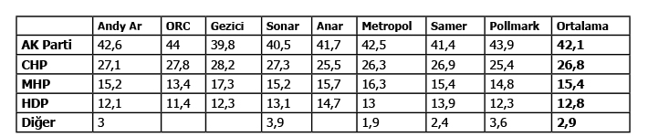 1 Kasım tekrar seçimine 11 gün kala 8 farklı şirketten anket sonuçları ve ortalamalar...