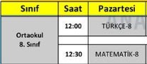 8. sınıf pazartesi ders programı TRT EBA 8. sınıf ders saatleri