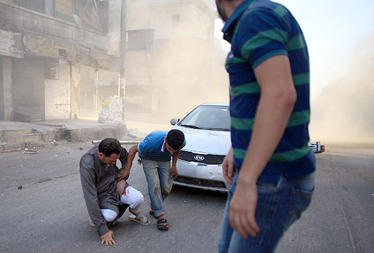 Halep'te muhaliflerin denetimindeki Muyesir bölgesine atılan varil bombalı saldırıyı görüntülemeye giden Anadolu Ajansı (AA) ekibinin bulunduğu konvoy havan topu ve roketli saldırıya uğradı.
