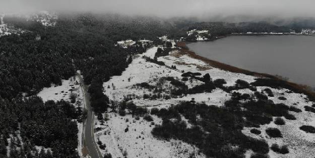Bolu’nun gözde turizm merkezi Abant Tabiat Parkı’na düşen yılın ilk karıyla birlikte yeşil alanlar beyazlara büründü. Tatilcileri hem sürpriz yaşatan hem de mest eden kar manzarası havadan görüntülendi.