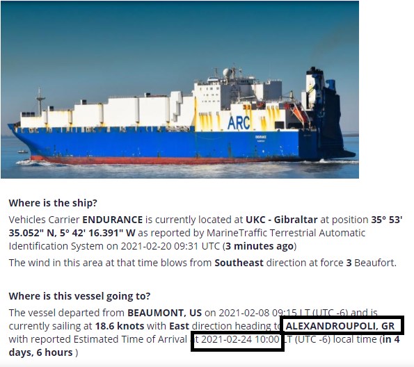 ENDURANCE kargo gemisiyle Dedeağaç limanına gelecek olan helikopterler ve askeri araçlar: