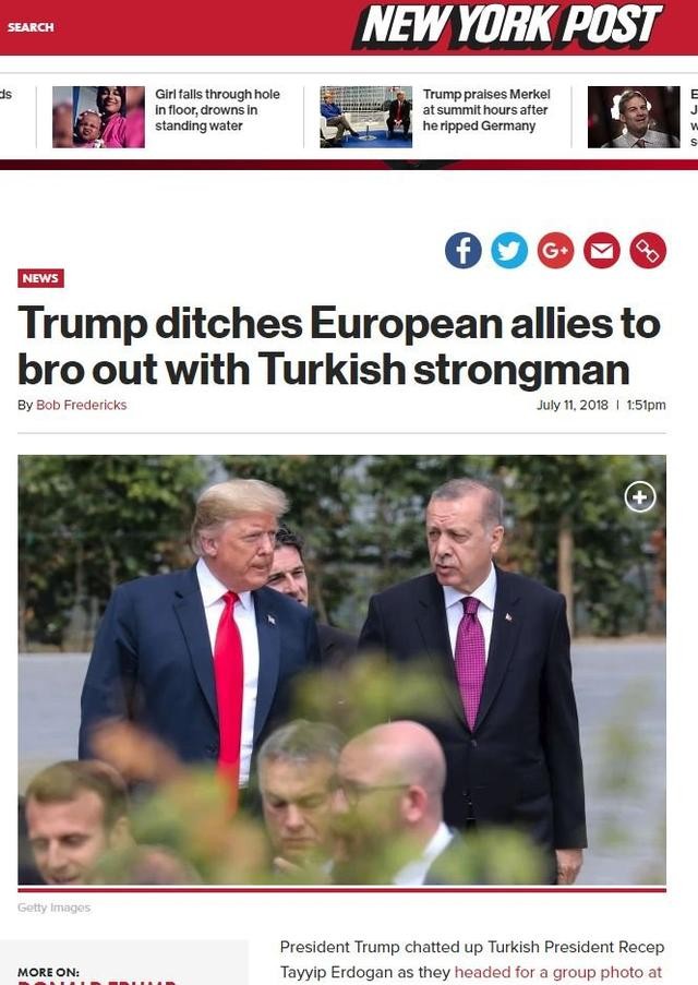 Bob Fredericks imzalı haberde, "Trump, Erdoğan'la kanka sohbeti yapmak için Batılı liderleri ekti" başlığını kullandı.