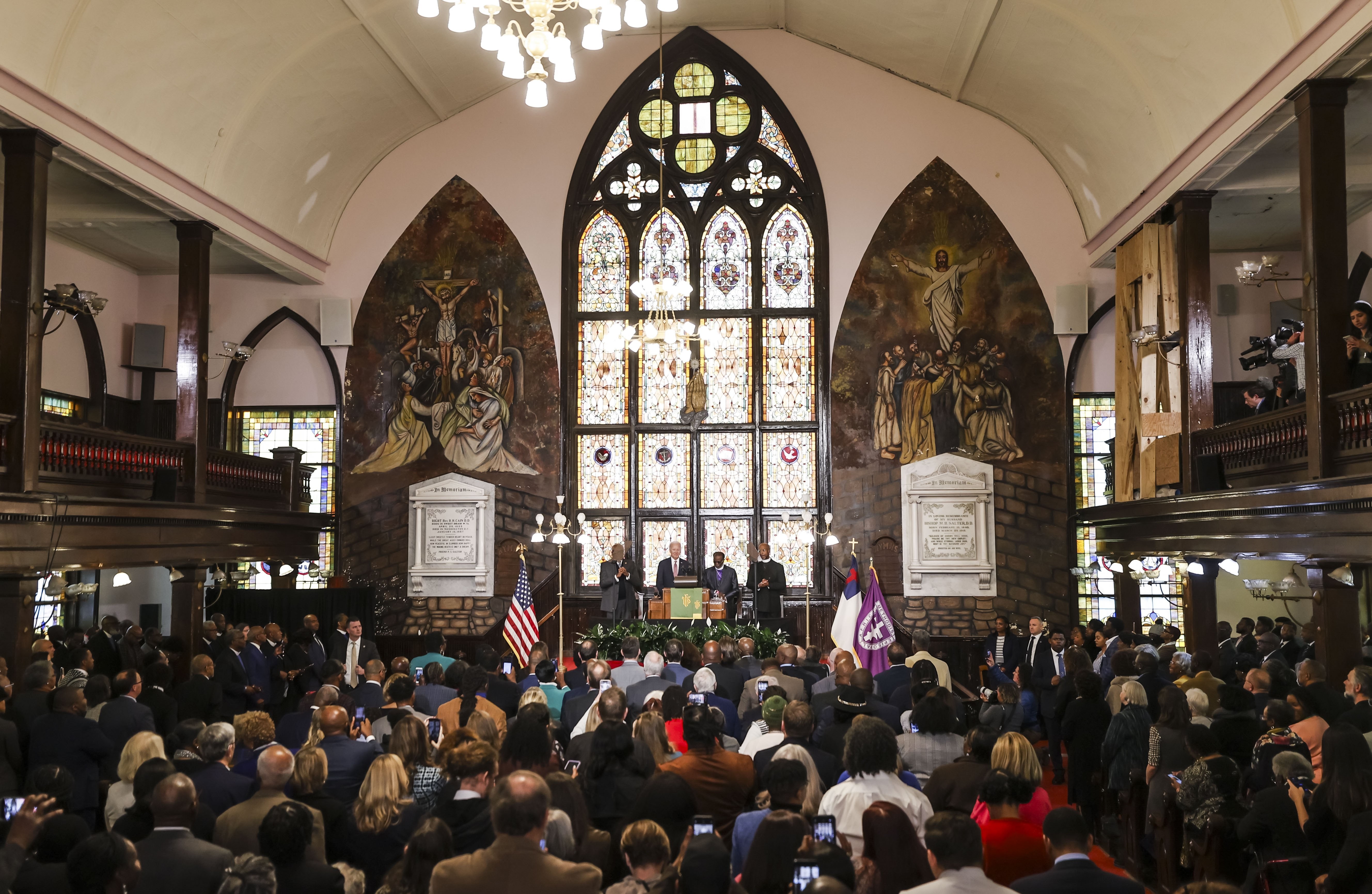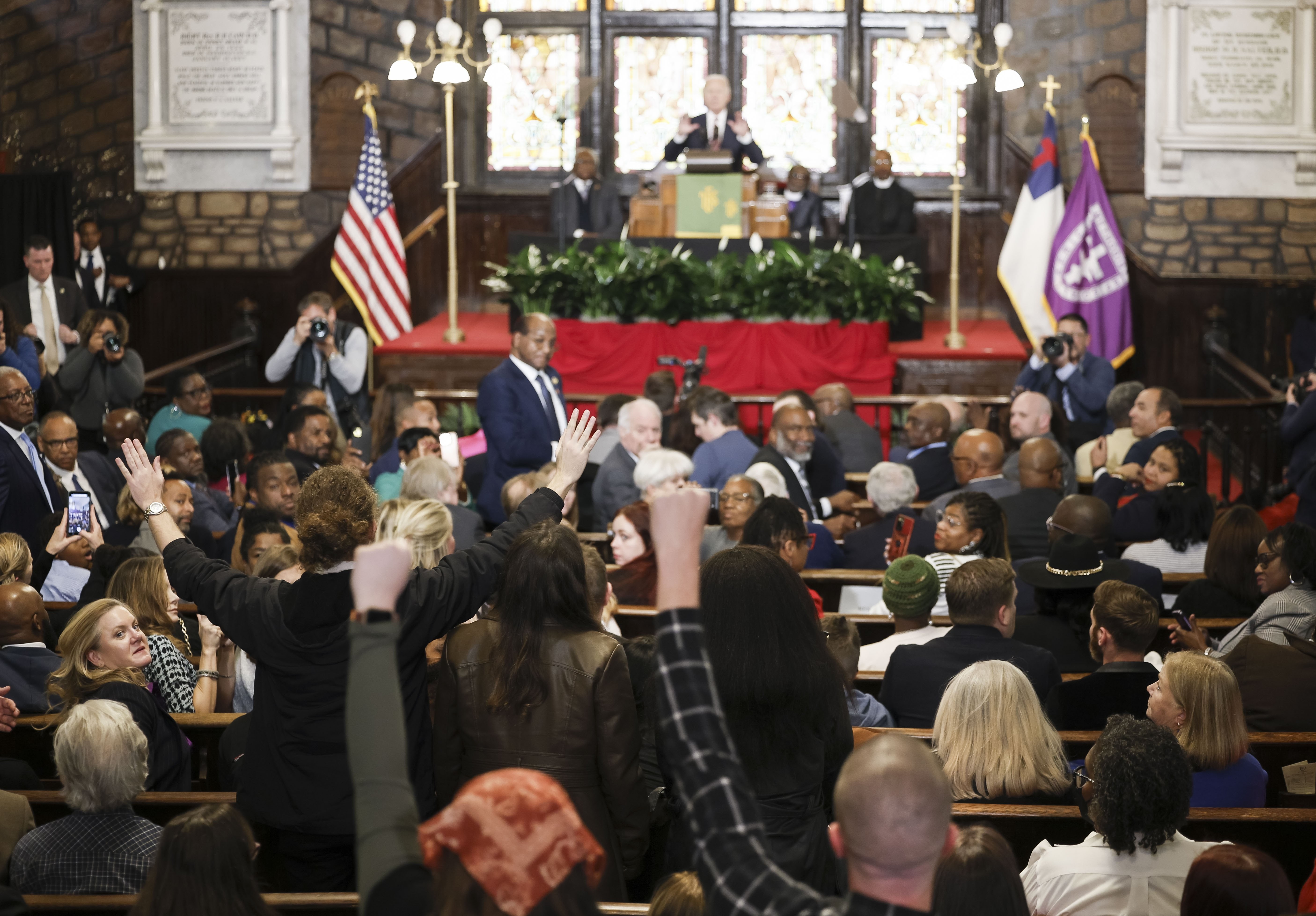 Bunun üzerine kilisedeki katılımcılardan birinin Biden’a, "Sen iyi bir adamsın" demesinin ardından kalabalık "Dört yıl daha" sloganı attı.