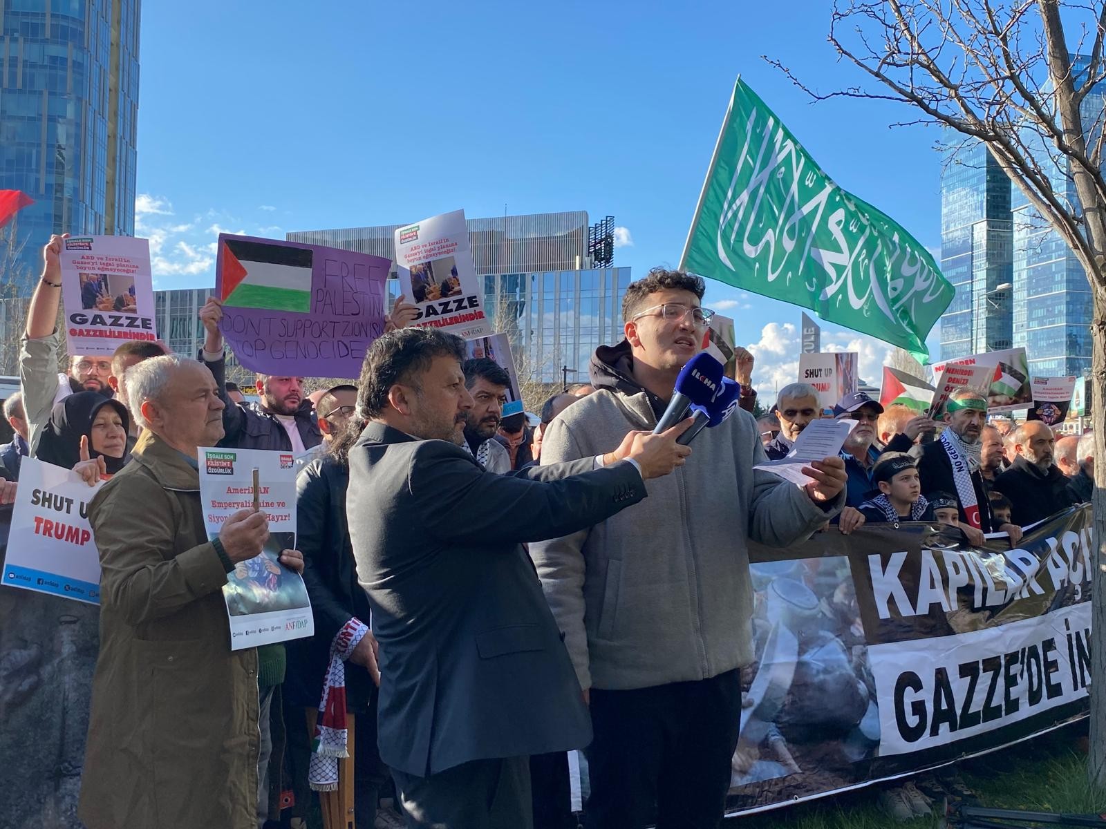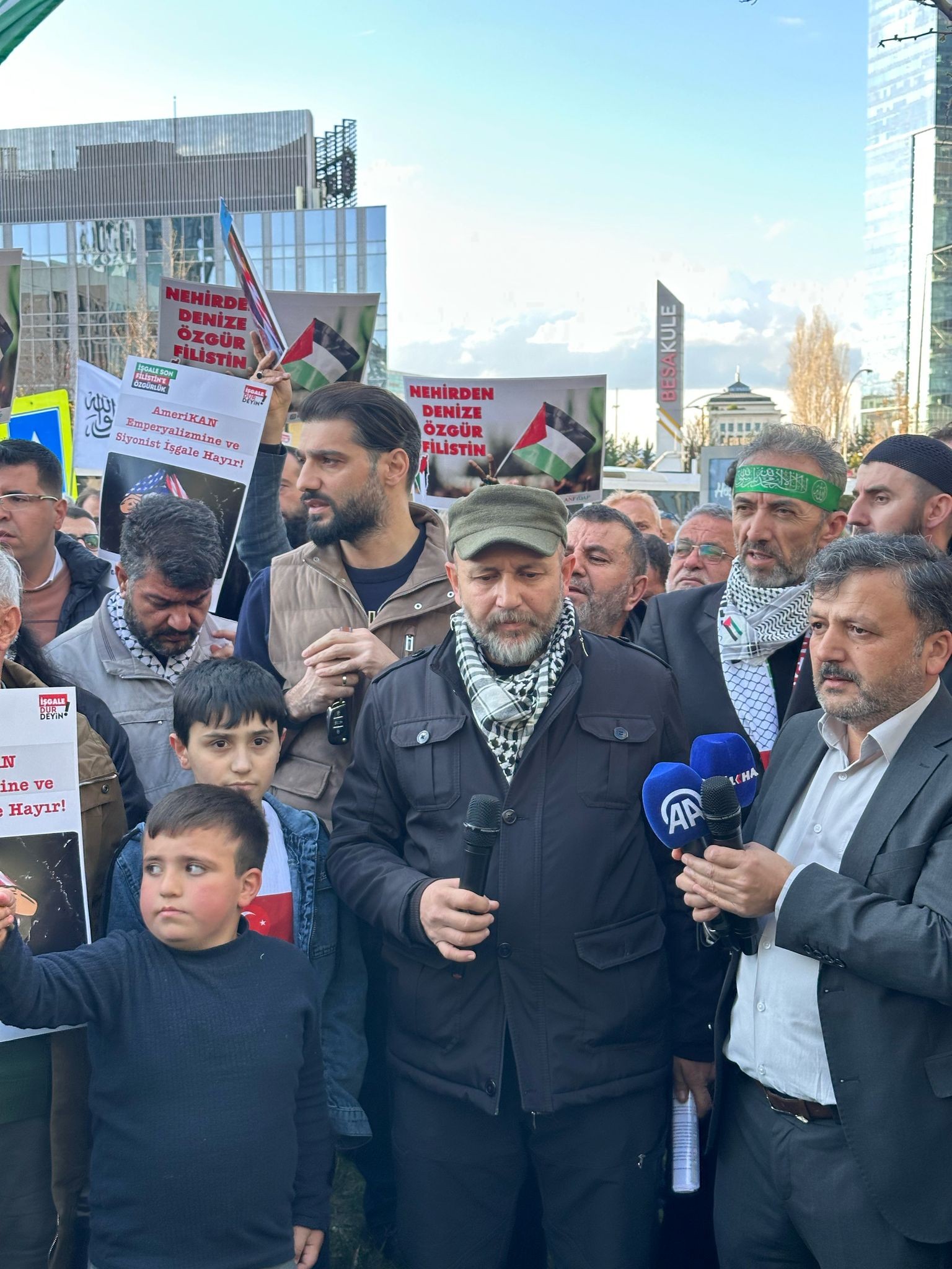 "Aylardır meydanlardayız. Artık Söz tükendi, söylenecek herşey söylendi. Harekete geçilmeli. Bedeli ne olursa olsun siyonist soykırımı durduracak adımlar atılmalı. Bu gün siyonistlerin Gazzede yaptığı soykırımın suç ortağı olan ABD elçiliği önünde toplandık. Silahı sıkan, bombayı atan, bebekleri yakan, kapıları kapatarak gıda su ve ilaç girişini engelleyen siyonist Yahudilerdir, her türlü askeri ekonomik siyasi desteği vererek bu soykırımı devam ettiren ise Amerika ve Batı ülkeleridir"
