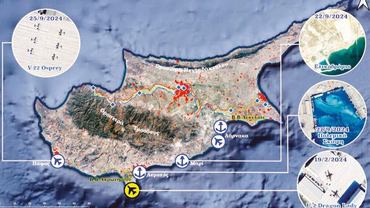 Simerini, Larnaka ve Baf'taki üslerde bulunan ABD'ye ait savaş uçakları ile helikopterlerin uydu görüntülerini servis ederek, Limasol Limanı'nın ABD ve diğer ülkelerin gemilerine ev sahipliği yaptığını, Ada'daki İngiliz üslerinin devamlı faaliyette olduklarına dikkati çekti.