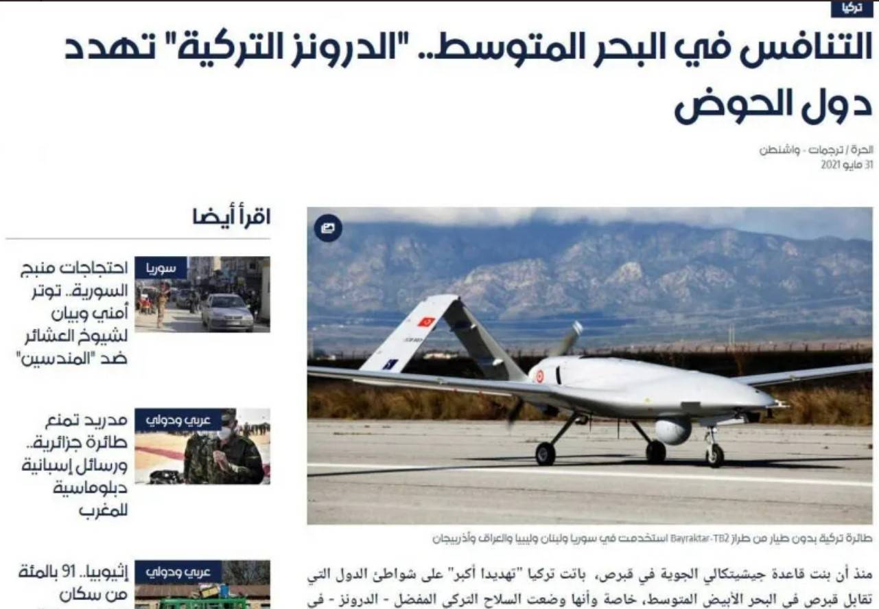 Orta Doğu ve Kuzey Afrika'da yayın yapan ABD merkezli, Arapça bir haber kanalı olan Alhurra News'te, "Türk SİHA'ları havza ülkelerini tehdit ediyor" başlıklı bir yazı yayımlandı.