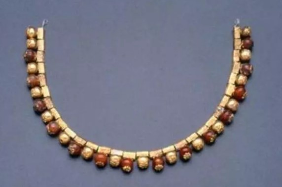 New York Kültür ve Tanıtma Ataşesi Hilal Demirel, AA muhabirine yaptığı açıklamada, kolyenin yaklaşık 20 santimetre uzunluğunda, altın ve karnelyan taşlarından yapılmış nar şeklinde boncuklardan oluştuğu bilgisini paylaştı.