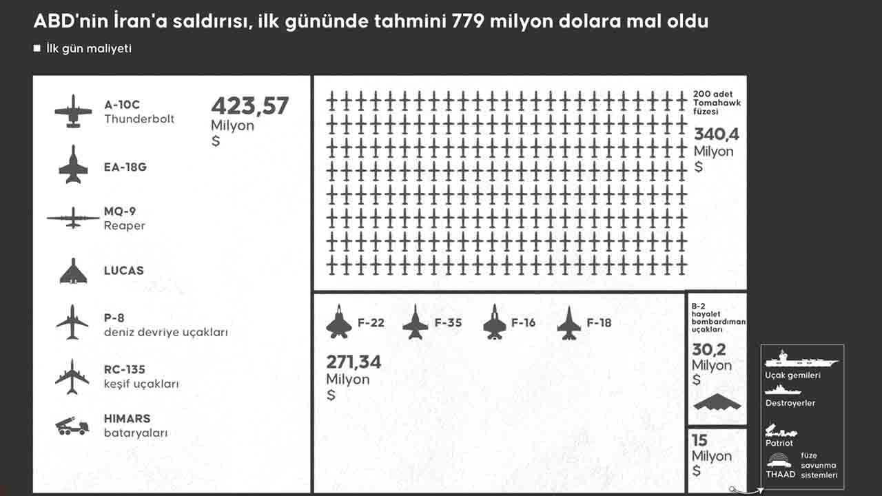 ABD ordusunun, İran'a yönelik askeri harekâtının ilk 24 saatinde yaklaşık 779 milyon dolar harcadığı hesaplandı.