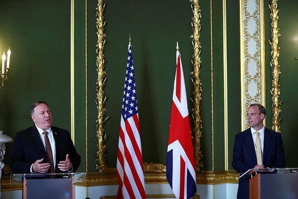ABD Dışişleri Bakanı Mike Pompeo, Londra ziyareti sırasında mevkidaşı Dominic Raab ile bir araya geldi. İkili görüşmelerin ardından ortak basın toplantısı düzenledi.