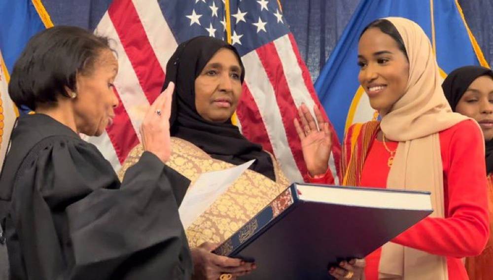 ABD'nin Minnesota eyalet meclisine seçilen en genç Müslüman kadın üye Zeynep Mohamed, Kur'an'a el basarak yemin etti ve temsilcilik görevine başladı.