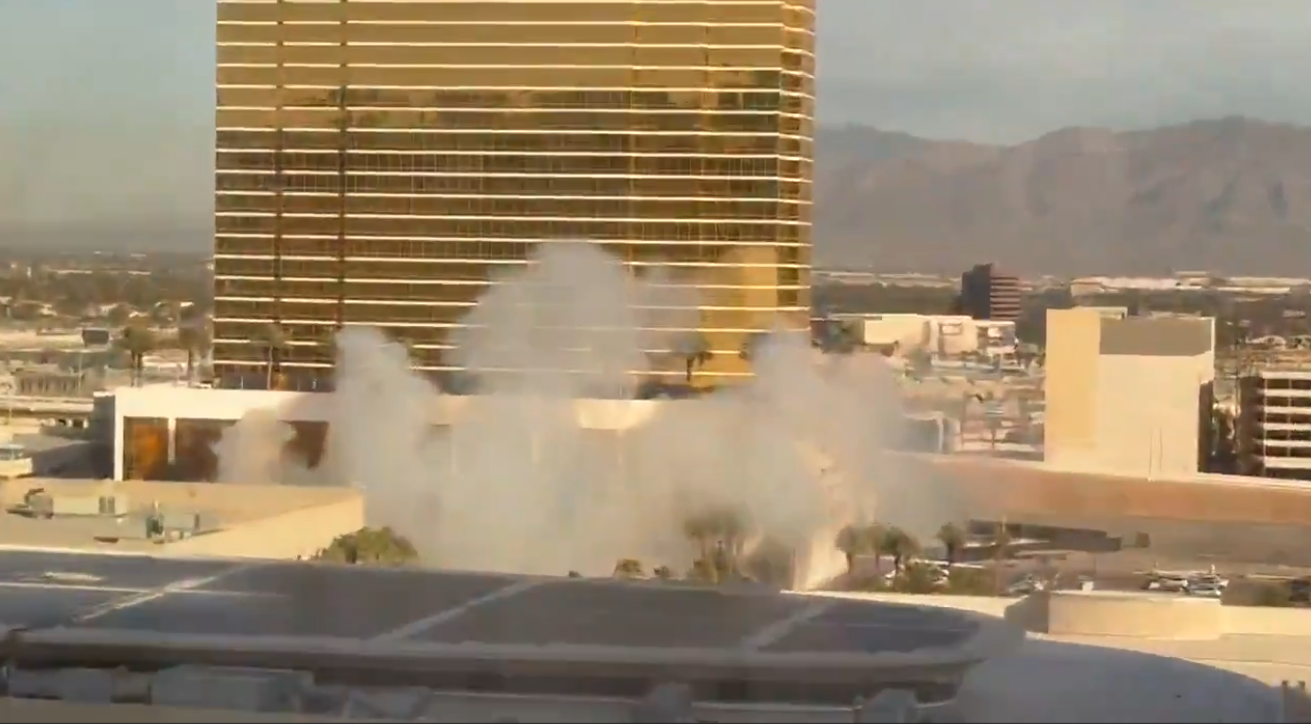 Patlama, Fashion Show Drive'daki Trump Oteli'nden yükselen büyük bir duman bulutu bıraktı.