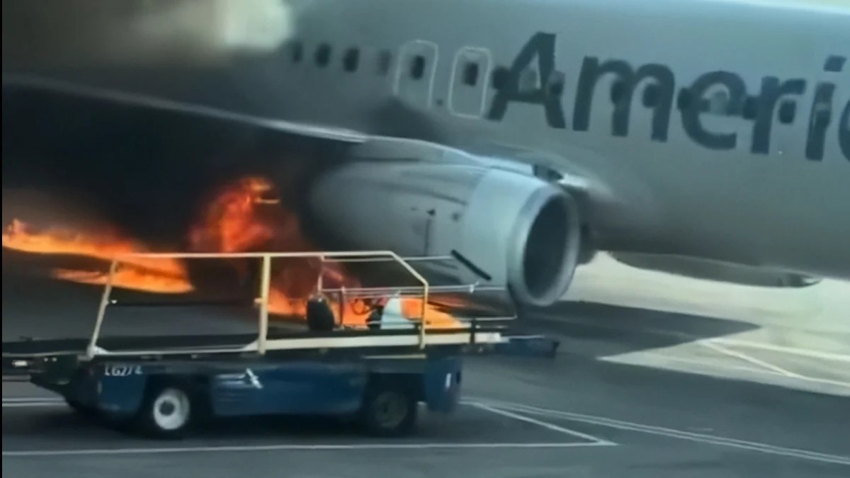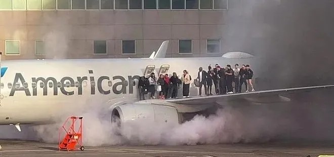 Sosyal medyada paylaşılan videolarda, American Airlines'a ait uçaktan dumanların yükseldiği ve yangın söndürme çalışmalarının yapıldığı görülüyor.