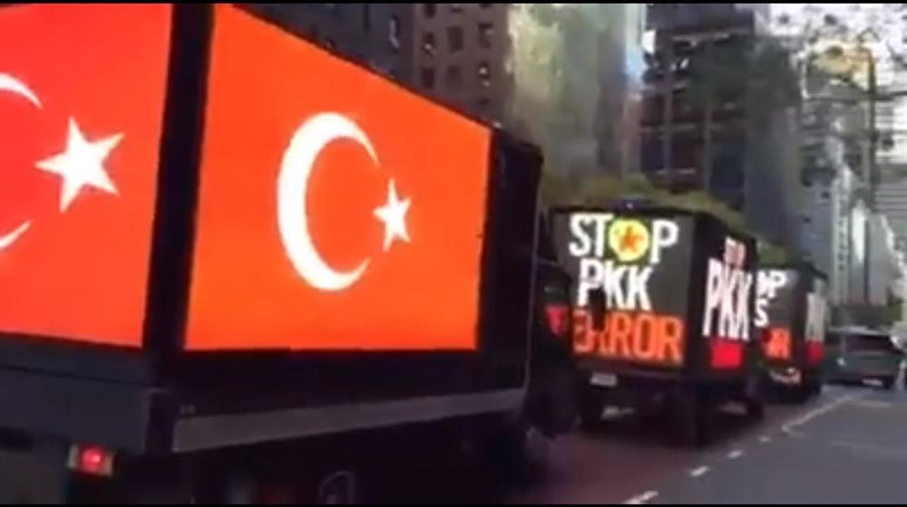 ABD'de bulunan Türk Sivil Toplum Kuruluşları bir farkındalık kampanyası başlattı. Kampanya kapsamında üzerinde "PKK terörüne hayır" "DAEŞ terörüne hayır" yazılı araçlar ABD caddelerinde yerini aldı.