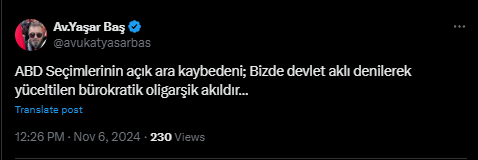 Avukat Yaşar Baş, Sosyal medya hesabından ABD Seçimleri ilgili dikkat çeken bir paylaşım yaptı.